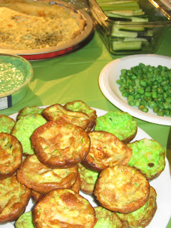 Nous avons donc mangé vert et les idées (avec ou sans colorant) ont été variées : trempettes céleri et concombre, petits flans de courgettes, guacamole, petits pois au wasabi, tarte aux légumes verts, tarte aux petits pois, pain de poisson vert, pâtes au pesto...